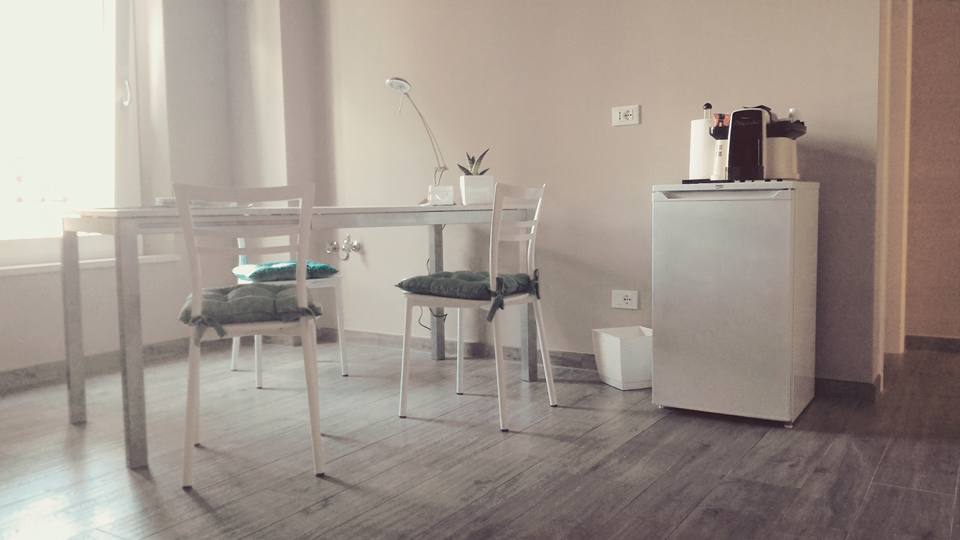 In the common area you can fins an IRON table, a fridge for beverages, a coffee machine and a cosy table to eat or work